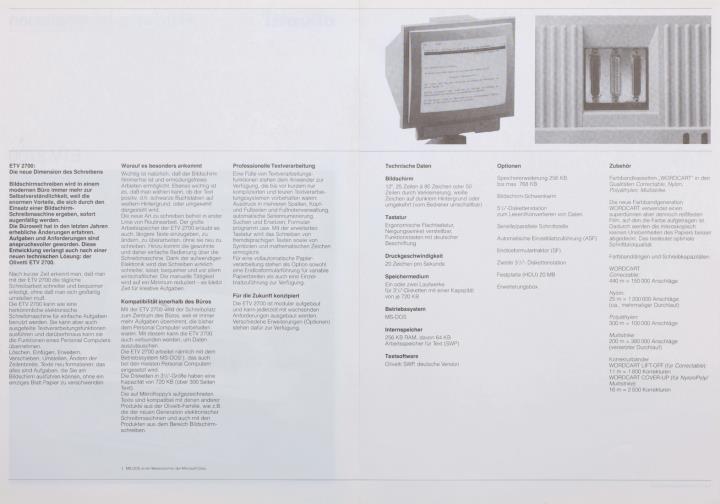 Faltprospekt für elektronische Bildschirmschreibmaschine Olivetti ETV 2700 Nr. 4/88