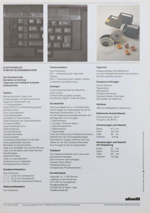 Prospekt für elektronische Kompaktschreibmaschine Olivetti Praxis 40 Nr. 09/101/SM/83