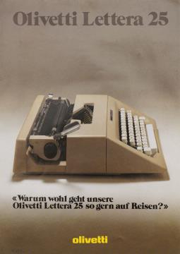 Prospekt für Reiseschreibmaschine Olivetti Lettera 25 Warum wohl geht unsere Olivetti Lettera 25 so gern auf Reisen? Nr. 10-74 / 3901604 J (D)
