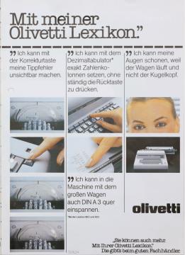 Faltprospekt für elektrische Schreibmaschine Olivetti Lexikon 83 DL Die exklusive Kofferschreibmaschine mit der individuellen Note Nr. 12-76 / 3902114 H (D)