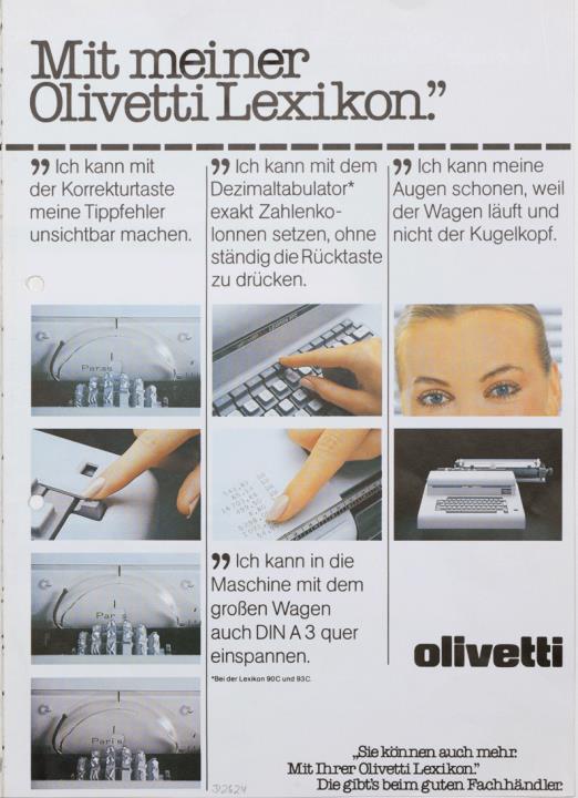 Faltprospekt für Schreibmaschine Olivetti Lexikon 94C