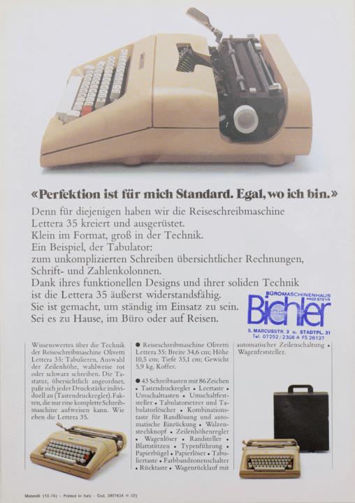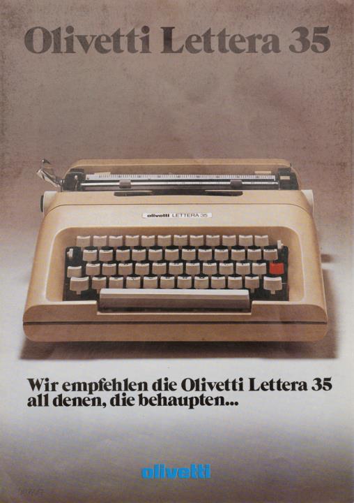 Prospekt für Reiseschreibmaschine Olivetti Lettera 35 Wir empfehlen die Olivetti Lettera 35 all denen, die behaupteNr... Nr. 10-74 / 3901634 H (D)