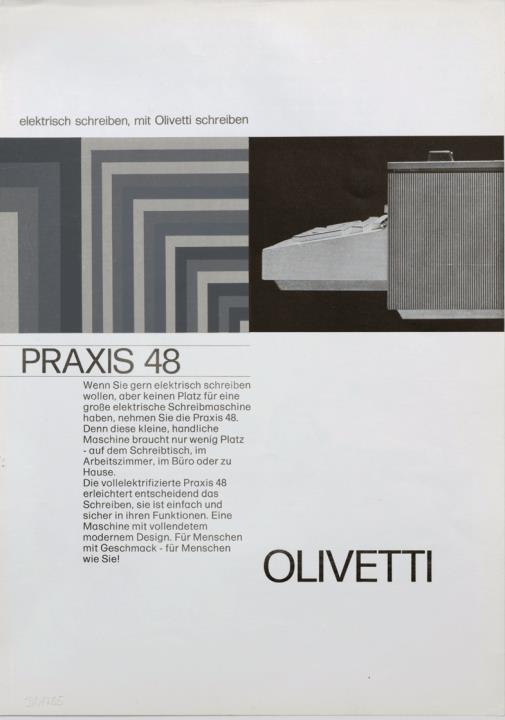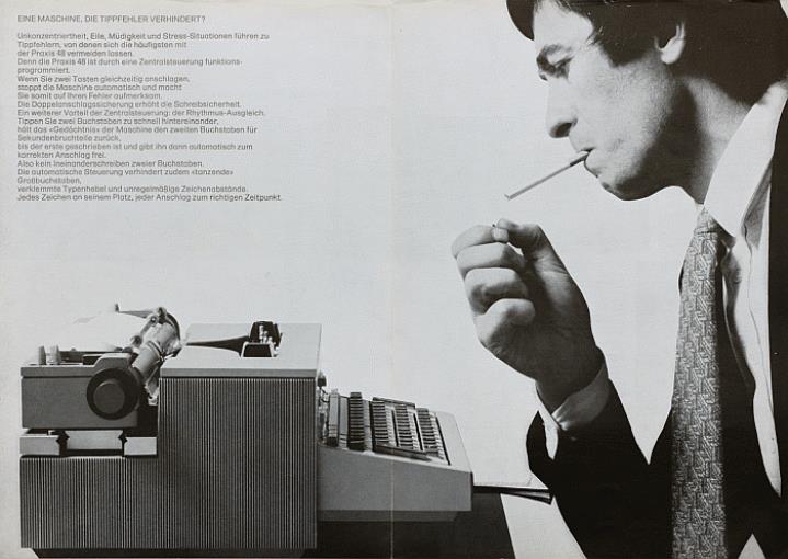 Faltprospekt für elektrische Schreibmaschine Olivetti Praxis 48 elektrisch schreiben, mit Olivetti schreiben Nr. 1-75 / 3904284 B (D)