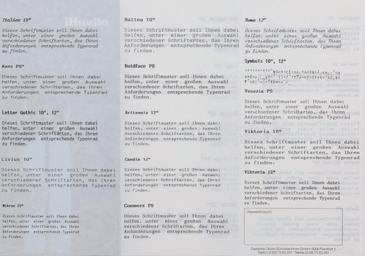 Schriftartenverzeichnis für Typenrad-Schreibmaschinen Olivetti