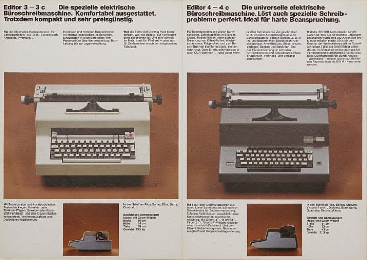 Faltprospekt für elektrische Büroschreibmaschinen Olivetti Nr. 09/004/SM/6.75