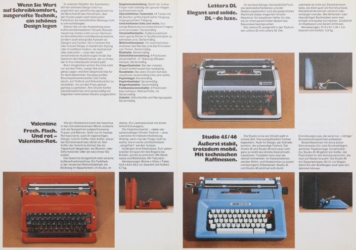 Faltprospekt für tragbare Schreibmaschine Olivetti Nr. 42 031