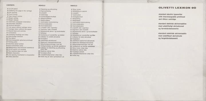 Bedienungsanleitung dreisprachig für elektrische Schreibmaschine Olivetti Lexikon 90 Nr. 1-76 / 103710 D (GB-DK-N)
