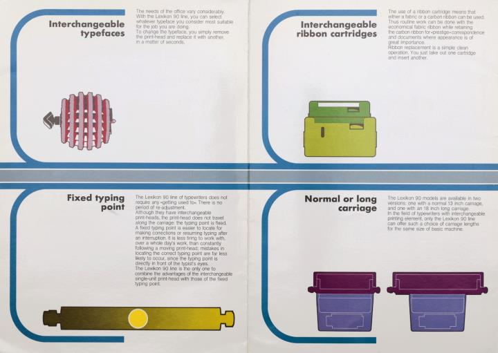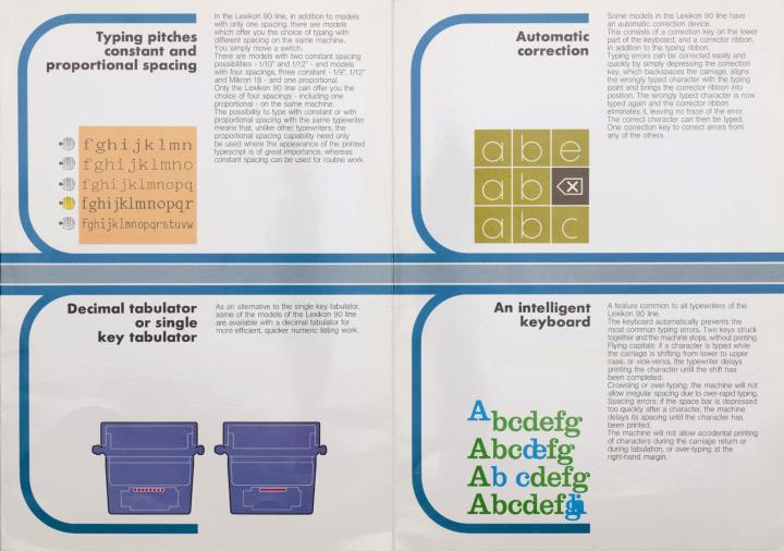 Faltprospekt für elektrische Schreibmaschine Olivetti Lexikon 90 - 94C mit austauschbarem Schreibkopf, Festbreiten- und Proportionalschrift Nr. 5-78 / 3904793 Z (GB)