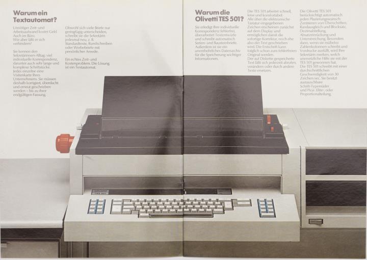 Prospekt für elektronische Speicherschreibmaschine Olivetti TES 501 Textverarbeitungssystem Nr. 1-77 / 3901124 W (D)