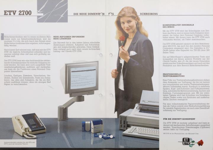 Faltprospekt für Bildschirmschreibmaschine Olivetti ETV 2700 Die neue Dimension des Schreibens Nr. 3908524 C/03/084/ETV/3-88 (D)