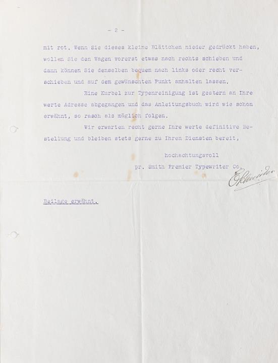 Schreibmaschinenhersteller, Geschäftskorrespondenz