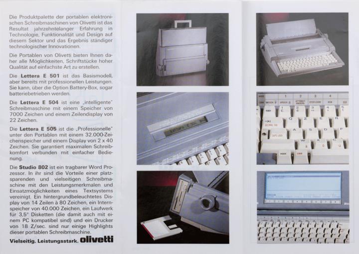 Faltprospekt für tragbare elektrische Schreibmaschinen Olivetti Die bessere Art zu schreiben Nr. 71010