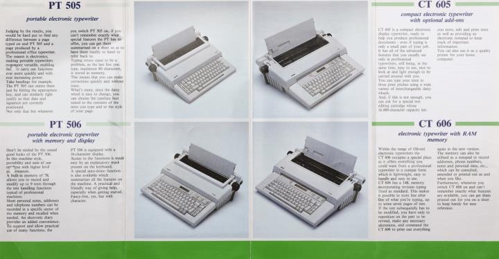 Faltprospekt für tragbare elektronische Schreibmaschinen Olivetti Nr. 0130690V-00 (02/91)