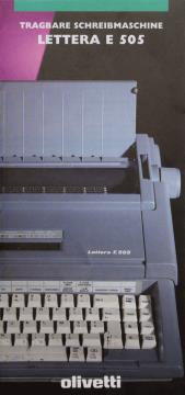 Faltprospekt für tragbare elektronische Schreibmaschine Olivetti Lettera E 505 Nr. 02/92