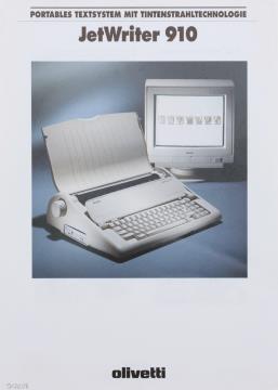 Prospekt für tragbare elektronische Schreibmaschine Olivetti JetWriter 910 Portables Textsystem mit Tintenstrahltechnologie Nr. 61110/6.94