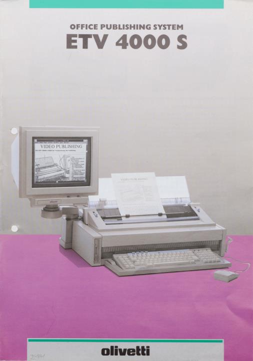 Faltprospekt für Bildschirmschreibmaschine Olivetti ETV 4000 S Office Publishing System Nr. 4/90