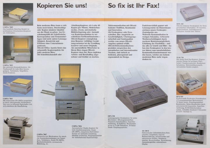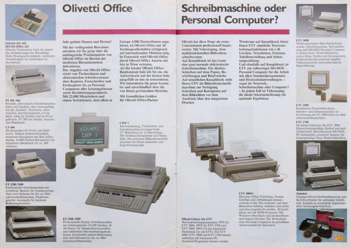 Katalog für Bildschirmschreibmaschinen, elektronische Schreibmaschinen, Computer, Kopierer, Faxgeräte und Drucker Olivetti beziehbar bei: Bichler moderne bürotechnik / computersysteme, Steyr