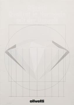 Faltprospekt zum Thema umweltfreundliche Produktion und Gütesiegel auf Olivetti Produkten Nr. 41050