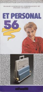 Prospekt für Schreibmaschine Olivetti ET Personal 56 Tragbare elektronische Schreibmaschine mit Speicher und Display Nr. 0130490Z-00 (6-89)