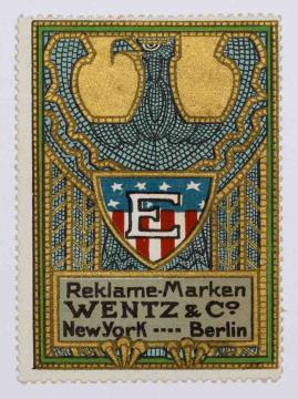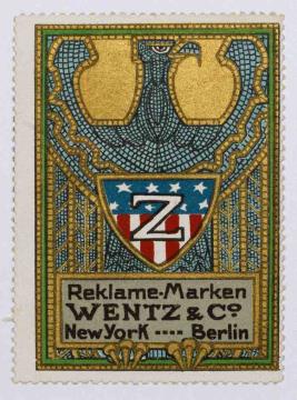 Werbemarke für Reklamemarkenvertrieb Wentz & Co Motiv: stilisierter deutscher Adler und US-Wappen mit Buchstaben Z rechteckig, polychrom