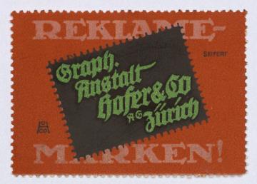 Reklame-Marken! Graph. Anstalt Hofer & Co. AG Zürich
