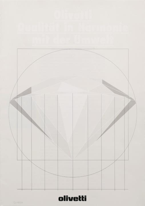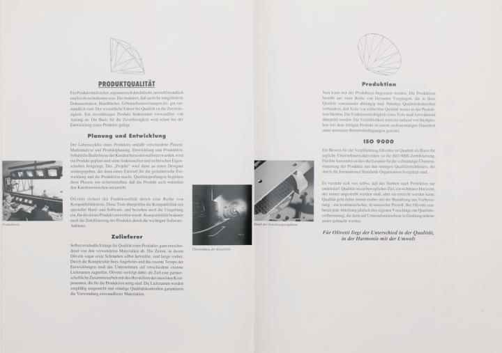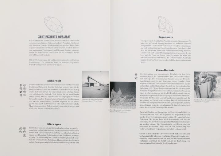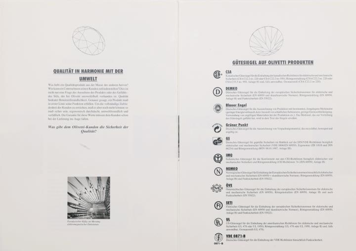 Faltprospekt zum Thema umweltfreundliche Produktion und Gütesiegel auf Olivetti Produkten Nr. 41050