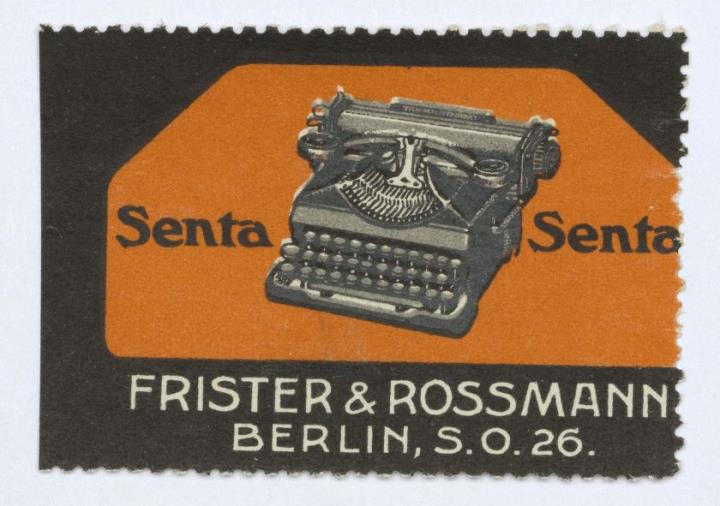 Reklamemarke/Werbemarke für Schreibmaschine Senta rechteckig, polychrom