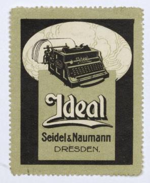 Reklamemarke/Werbemarke für Schreibmaschine Ideal rechteckig, polychrom Grafik: Fritz John