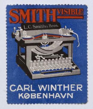 Reklamemarke/Werbemarke für Schreibmaschine L. C. Smith & Bros; rechteckig, polychrom Text: Carl Winther Kobenhavn