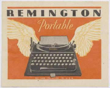 Reklamemarke/Werbemarke für Schreibmaschine Remington; rechteckig, polychrom Nr. DF 398