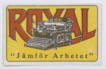 Reklamemarke/Werbemarke für Schreibmaschine Royal; rechteckig, polychrom Text: Jamför Arbetet