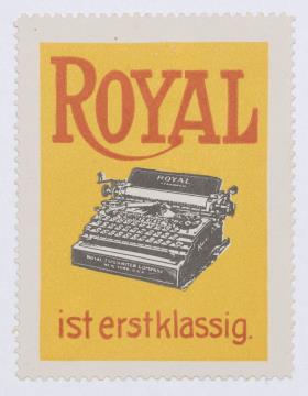 Reklamemarke/Werbemarke für Schreibmaschine Royal; rechteckig, polychrom