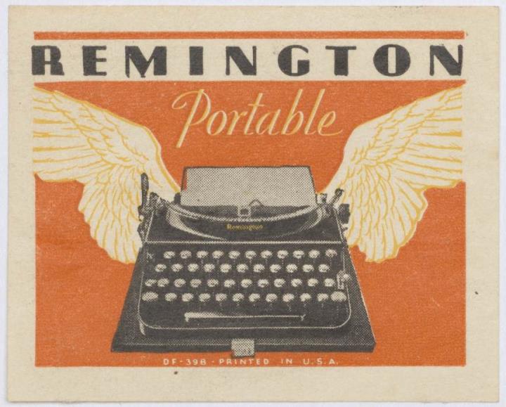 Reklamemarke/Werbemarke für Schreibmaschine Remington; rechteckig, polychrom Nr. DF 398