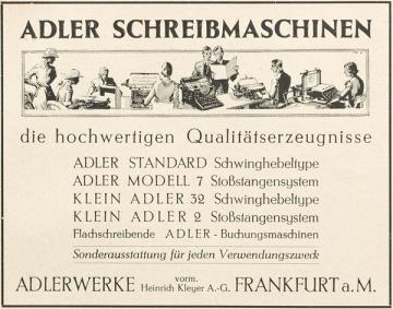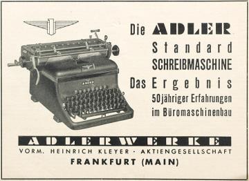 Werbeanzeige für Büroschreibmaschinen Adler monochrom