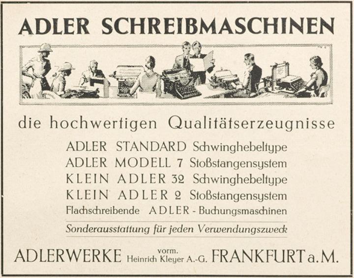 Werbeanzeige für Schreibmaschine Adler monochrom