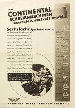Prospekt für Schreibmaschine Continental mit sechsfacher Spar-Zeilenschaltung Nr. C 3645 (1034200)