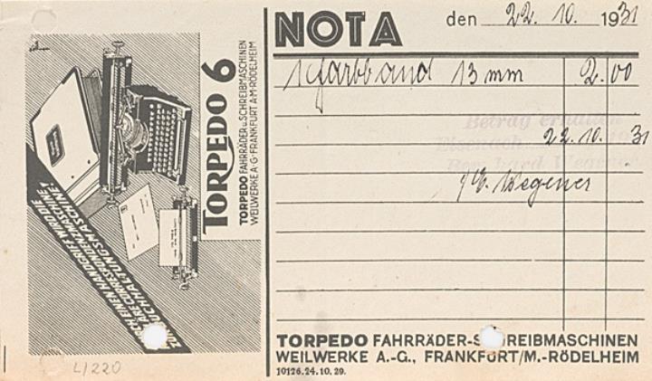 Verkaufsbeleg der Weilwerke AG, Frankfurt; datiert 22.10.1931 Handschrift
