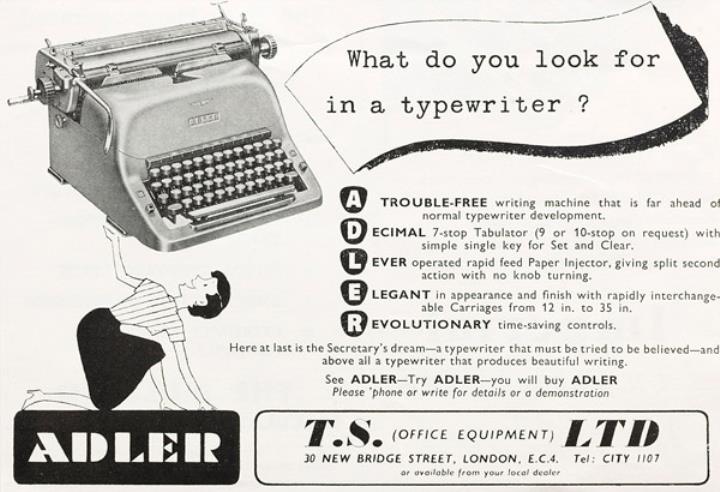 Werbeanzeige für Schreibmaschine Adler monochrom
