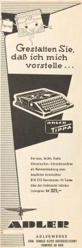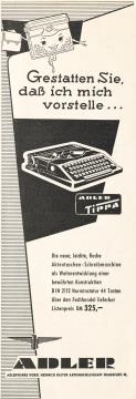 Werbeanzeige für Schreibmaschine Adler Tippa monochrom