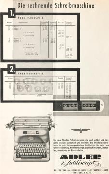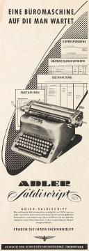 Werbeanzeige für Schreibmaschine Adler Saldiscript monochrom