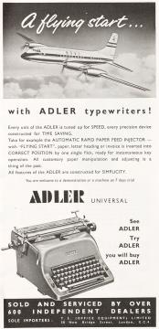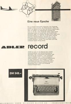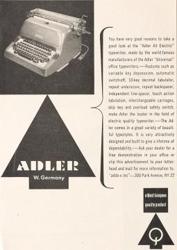 Werbeanzeige für Schreibmaschine Adler Universal monochrom