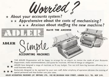 Werbeanzeige für Schreib- und Buchungsmaschine Adler monochrom
