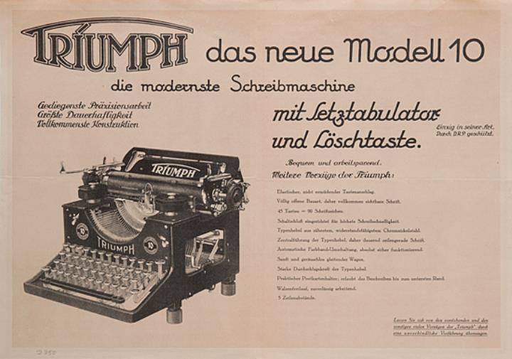 Faltprospekt für Schreibmaschine Triumph 10 Nr. 2012,200 M.I.28