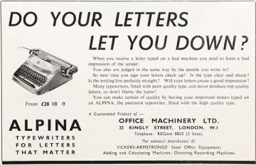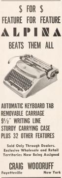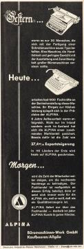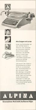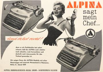 Werbeanzeige für Schreibmaschine Alpina monochrom