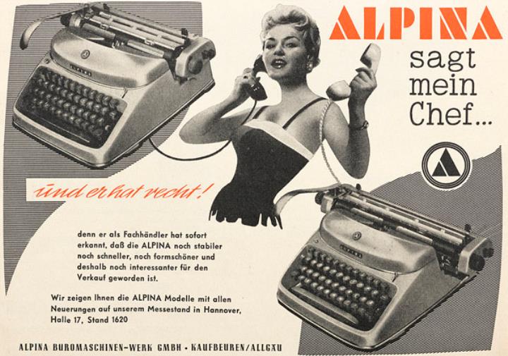 Werbeanzeige für Schreibmaschine Alpina polychrom