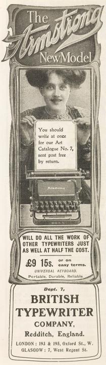 Werbeanzeige für Schreibmaschine Armstrong monochrom