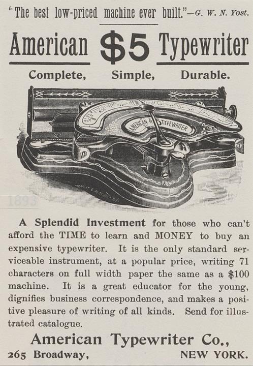 Werbeanzeige für Schreibmaschine American Index monochrom