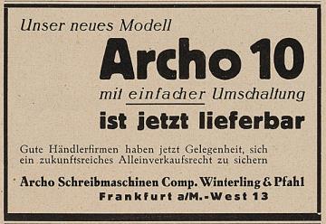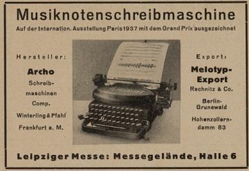 Werbeanzeige für Notenschreibmaschine Archo monochrom