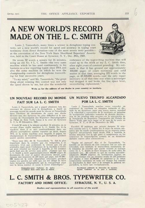 Más rápida [...] Mimeógrafo / A new world's record made on the L. C. Smith