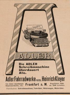 Werbeanzeige für Schreibmaschine Adler; auf Papier geklebt monochrom